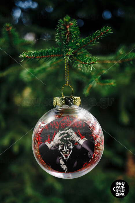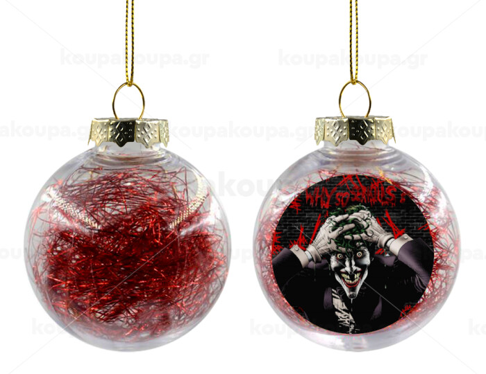 Joker Why so serious?, Transparent Christmas tree ball ornament with red filling 8cm