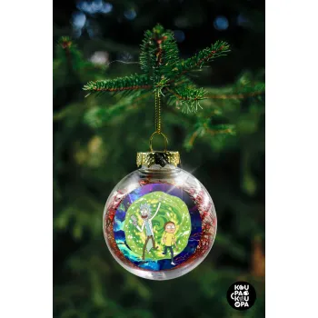 Rick and Morty, Transparent Christmas tree ball ornament with red filling 8cm
