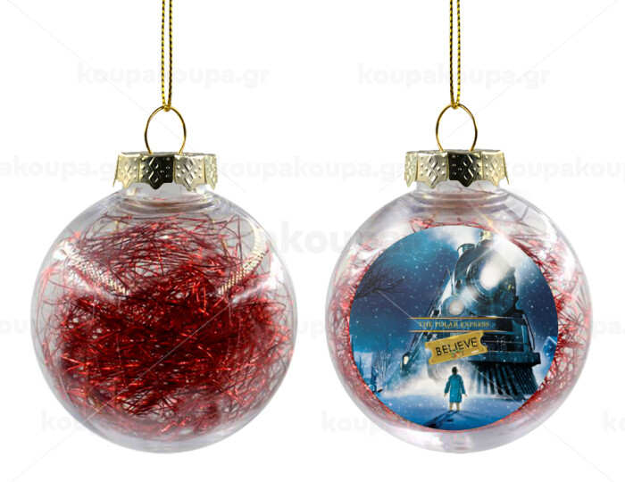The Polar Express, Transparent Christmas tree ball ornament with red filling 8cm