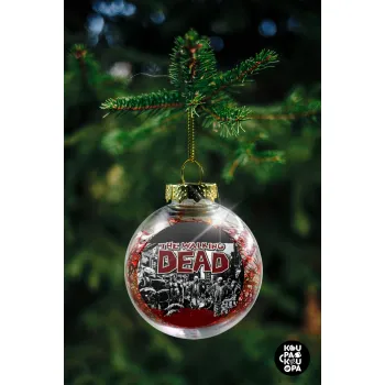 The walking dead comic drawing zombie, Transparent Christmas tree ball ornament with red filling 8cm