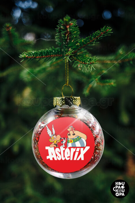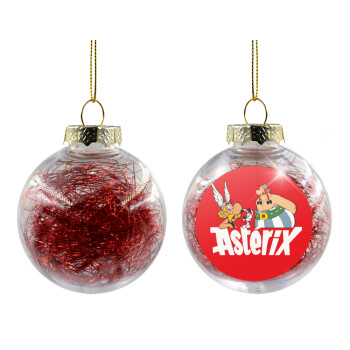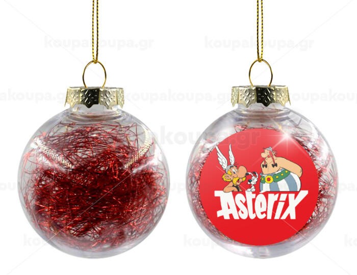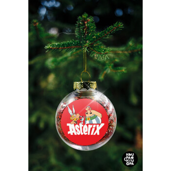 Asterix and Obelix, Transparent Christmas tree ball ornament with red filling 8cm