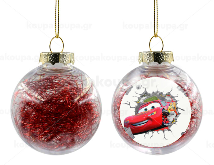 Brick McQueen, Transparent Christmas tree ball ornament with red filling 8cm