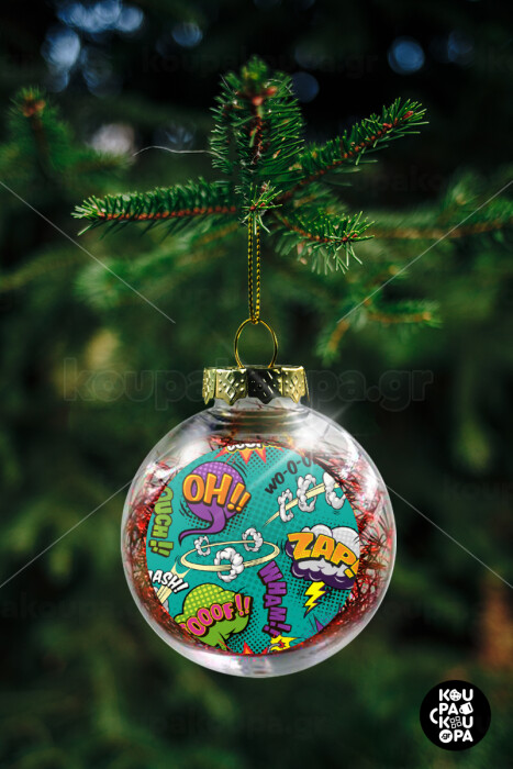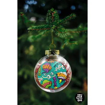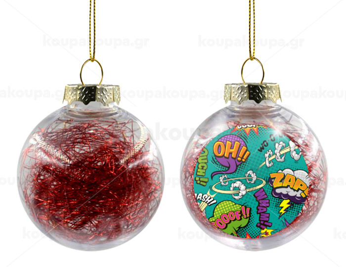 Comic oh, Transparent Christmas tree ball ornament with red filling 8cm