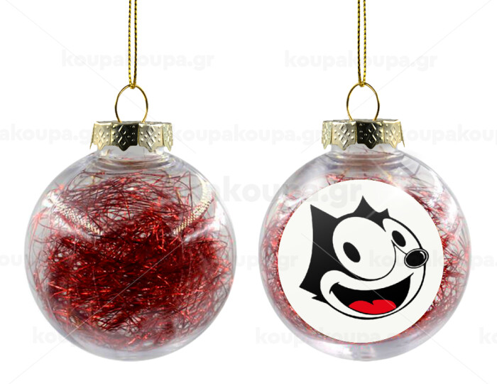 Felix the cat, Transparent Christmas tree ball ornament with red filling 8cm