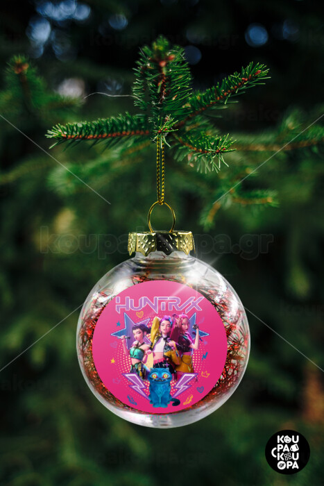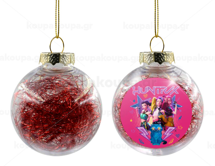 Huntrix K-pop series, Transparent Christmas tree ball ornament with red filling 8cm