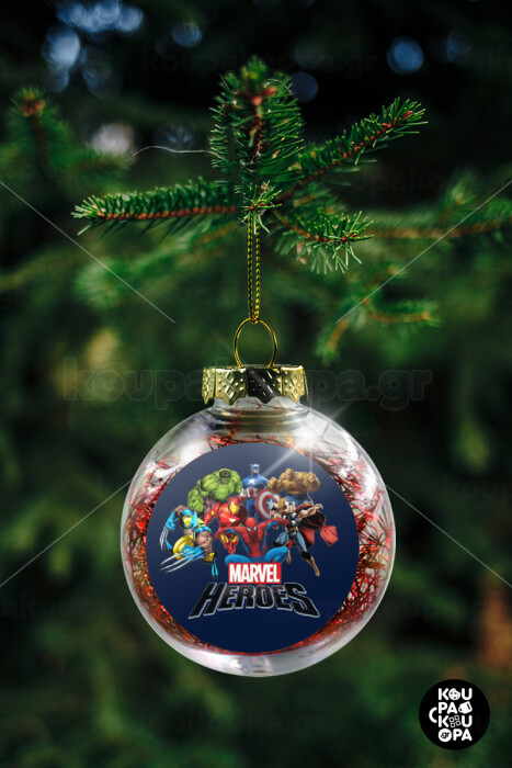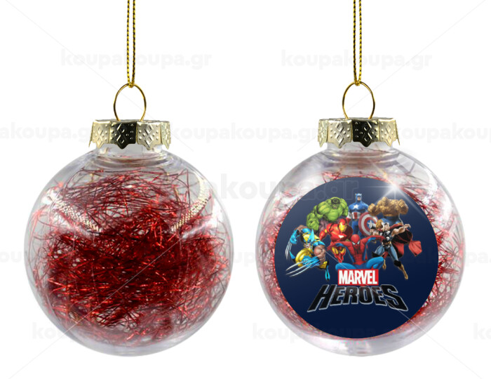 MARVEL heroes, Transparent Christmas tree ball ornament with red filling 8cm