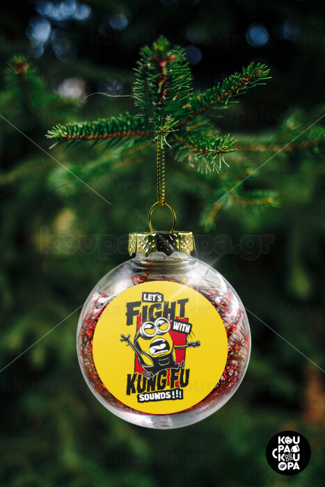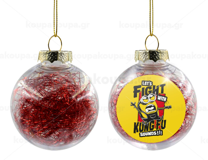 Minions Let's fight with kung fu sounds, Transparent Christmas tree ball ornament with red filling 8cm