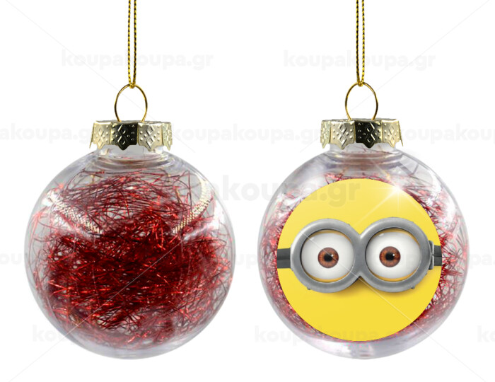 Minions, Transparent Christmas tree ball ornament with red filling 8cm