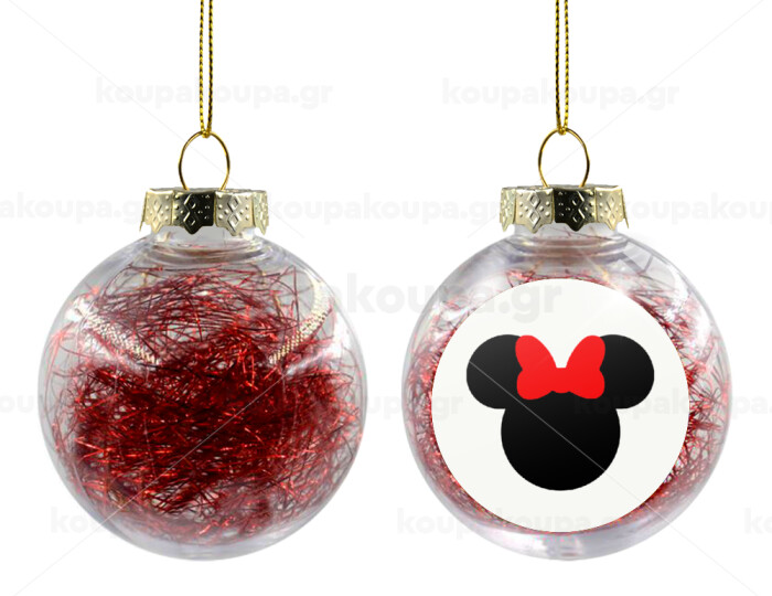 Minnie head, Transparent Christmas tree ball ornament with red filling 8cm