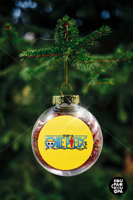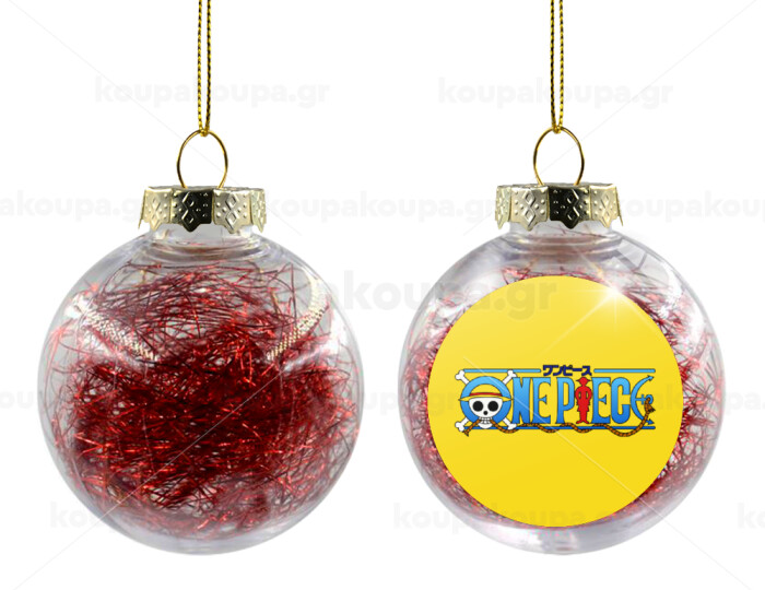 Onepiece logo, Transparent Christmas tree ball ornament with red filling 8cm