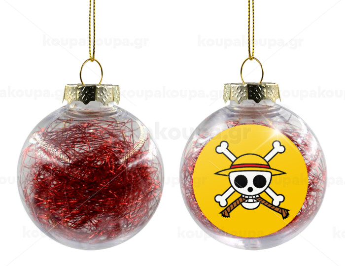Onepiece skull, Transparent Christmas tree ball ornament with red filling 8cm
