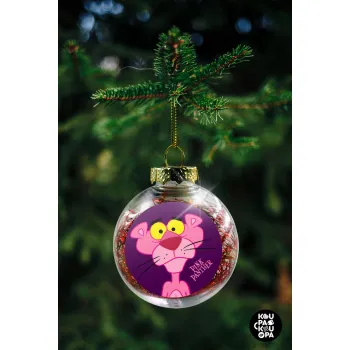 Pink Panther cartoon, Transparent Christmas tree ball ornament with red filling 8cm