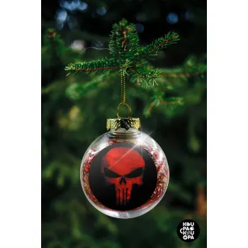 Red skull, Transparent Christmas tree ball ornament with red filling 8cm