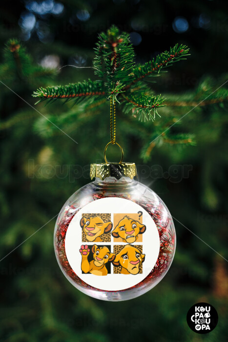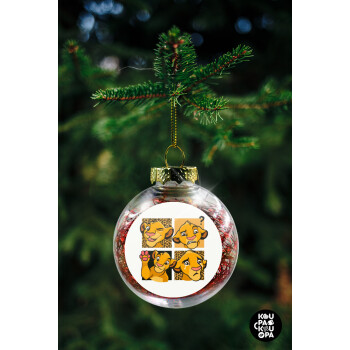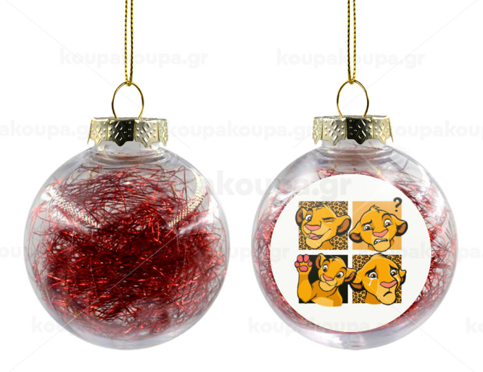 Simba, lion king, Transparent Christmas tree ball ornament with red filling 8cm