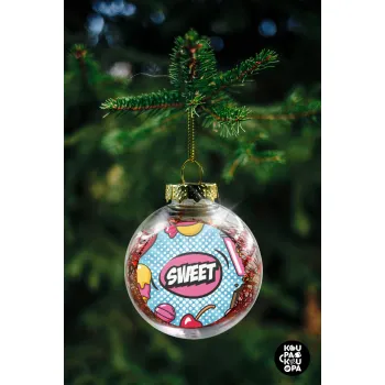 SWEET, Transparent Christmas tree ball ornament with red filling 8cm