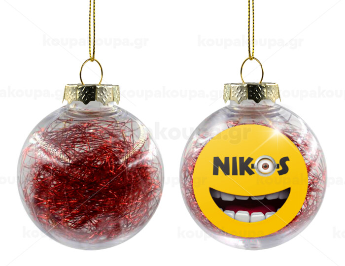 The minions, Transparent Christmas tree ball ornament with red filling 8cm