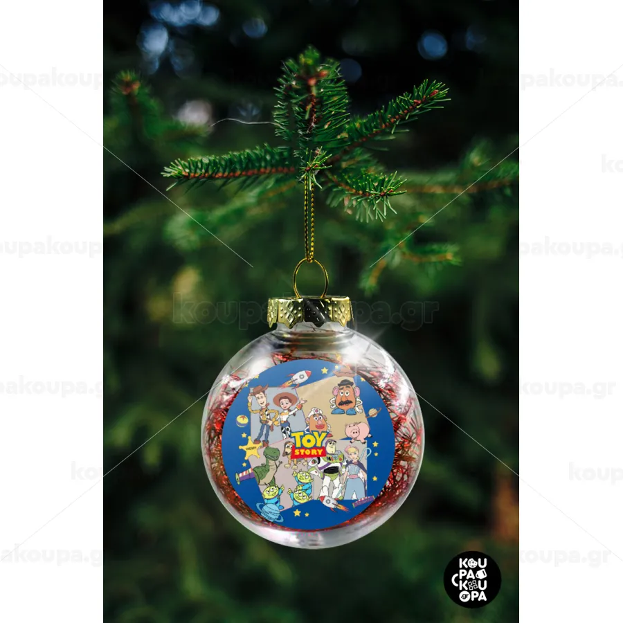 toystory characters, Transparent Christmas tree ball ornament with red filling 8cm