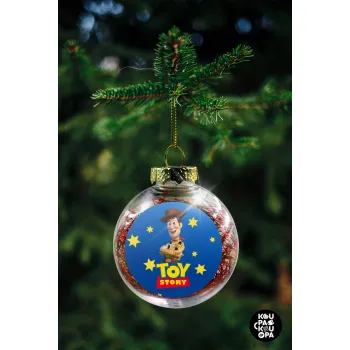 Woody cowboy, Transparent Christmas tree ball ornament with red filling 8cm