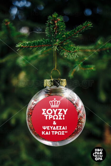 Σούζυ και ψεύδεσαι και τρως, Transparent Christmas tree ball ornament with red filling 8cm