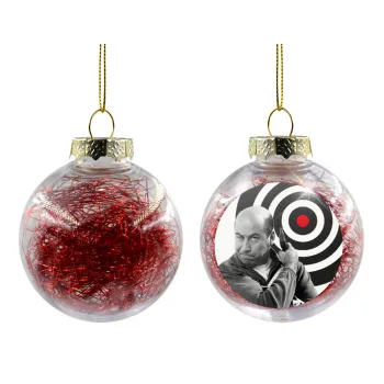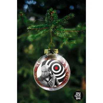 Θου Βου Φαλακρός Πράκτωρ, Transparent Christmas tree ball ornament with red filling 8cm