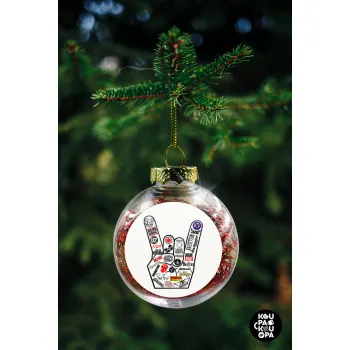 Best Rock Bands hand, Transparent Christmas tree ball ornament with red filling 8cm