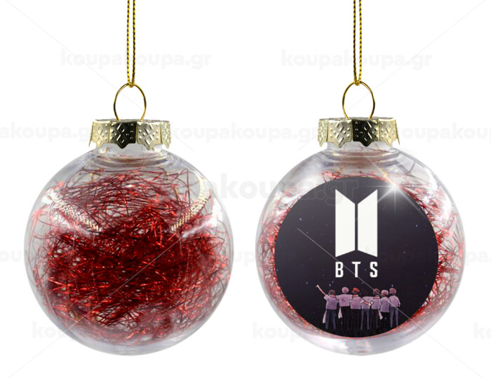 BTS, Transparent Christmas tree ball ornament with red filling 8cm