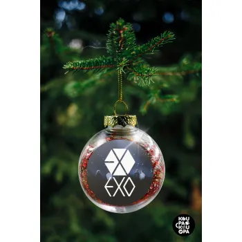EXO Band korea, Transparent Christmas tree ball ornament with red filling 8cm