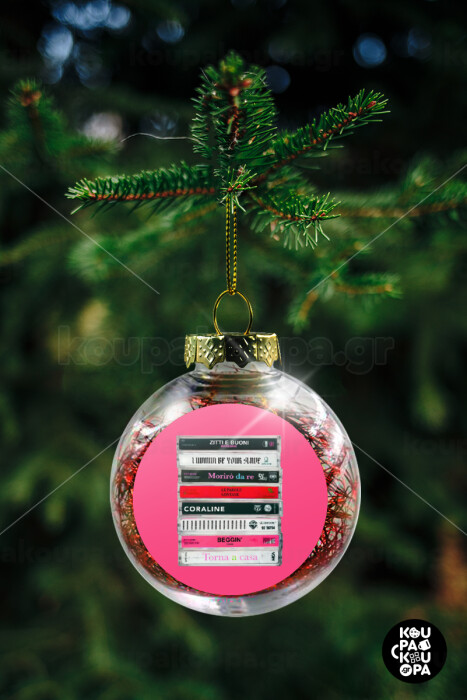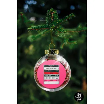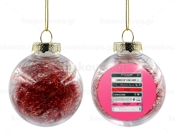 Maneskin Cassette, Transparent Christmas tree ball ornament with red filling 8cm