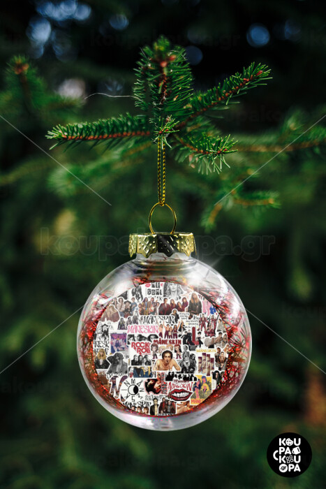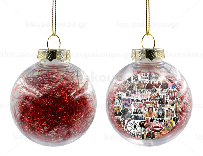 Maneskin stickers, Transparent Christmas tree ball ornament with red filling 8cm