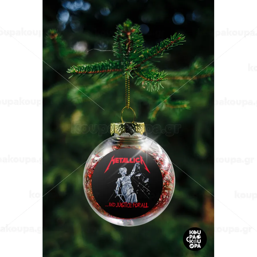 Metallica and justice for all, Transparent Christmas tree ball ornament with red filling 8cm
