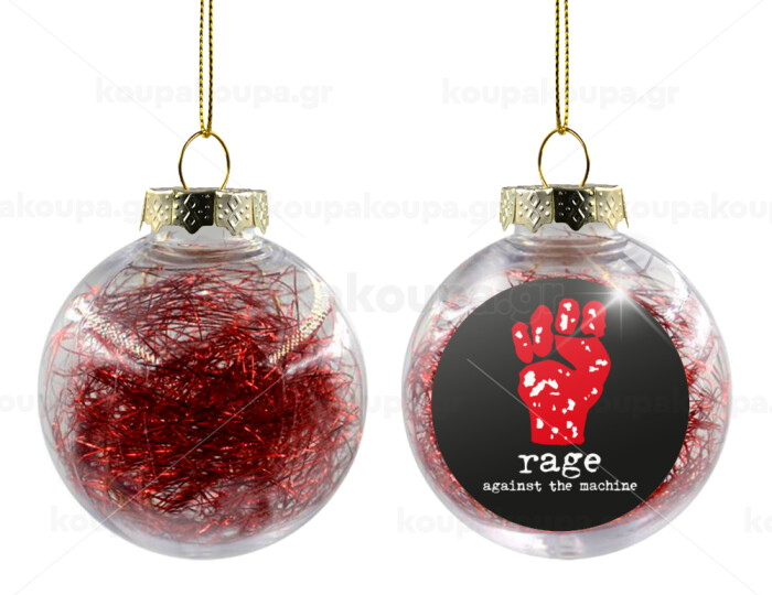 Rage against the machine, Transparent Christmas tree ball ornament with red filling 8cm