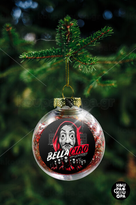 Bella Ciao Somos La resistencia, Transparent Christmas tree ball ornament with red filling 8cm