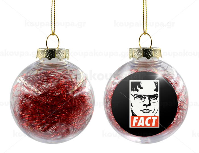 Dunder Mifflin FACT, Transparent Christmas tree ball ornament with red filling 8cm