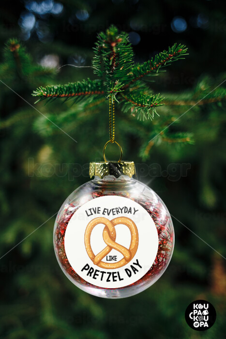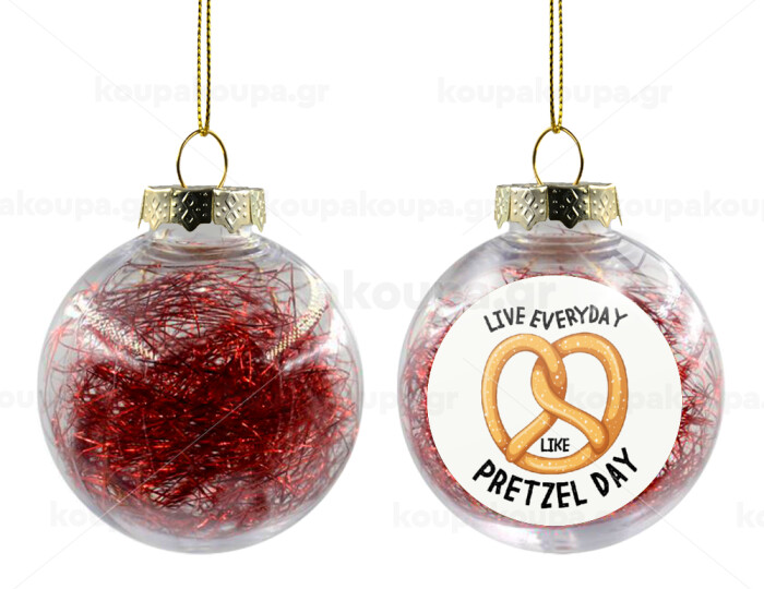 The office, Live every day like pretzel day, Transparent Christmas tree ball ornament with red filling 8cm