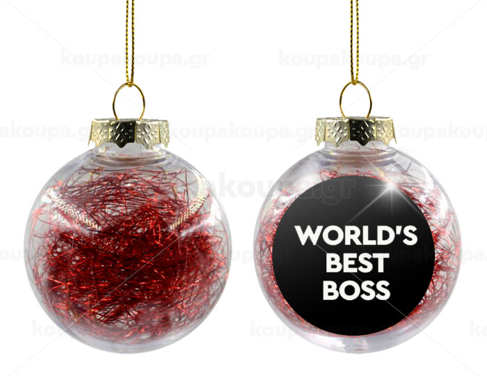 World's best boss, Transparent Christmas tree ball ornament with red filling 8cm
