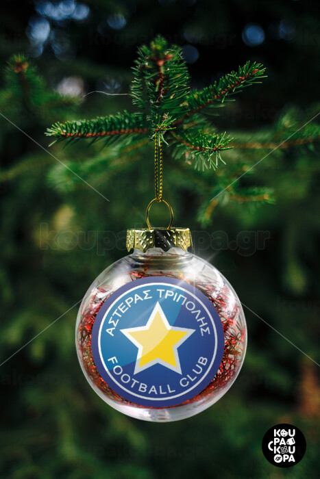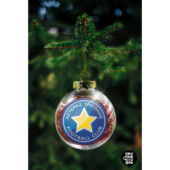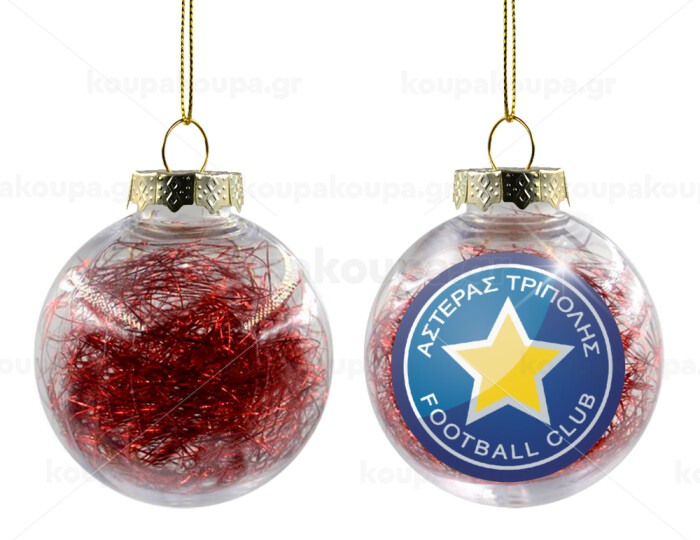 Asteras Tripolis, Transparent Christmas tree ball ornament with red filling 8cm