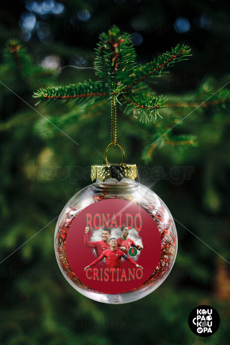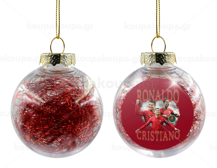 Cristiano Ronaldo, Transparent Christmas tree ball ornament with red filling 8cm