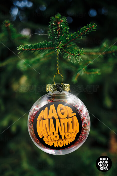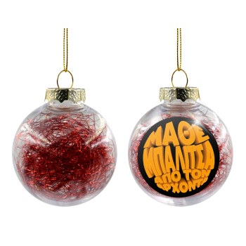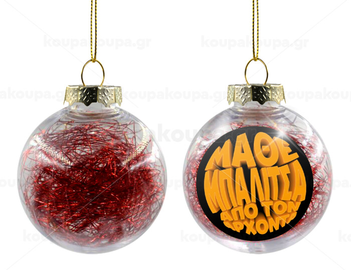Μάθε μπαλίτσα από τον Άρχοντα, Transparent Christmas tree ball ornament with red filling 8cm