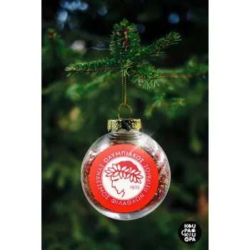 Ολυμπιακός, Transparent Christmas tree ball ornament with red filling 8cm