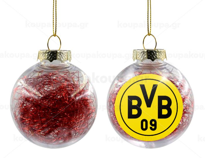 BVB Dortmund, Transparent Christmas tree ball ornament with red filling 8cm