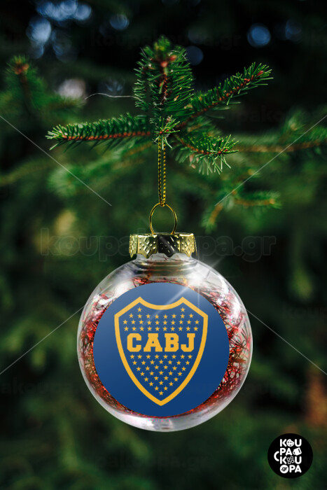 Club Atlético Boca Juniors, Transparent Christmas tree ball ornament with red filling 8cm