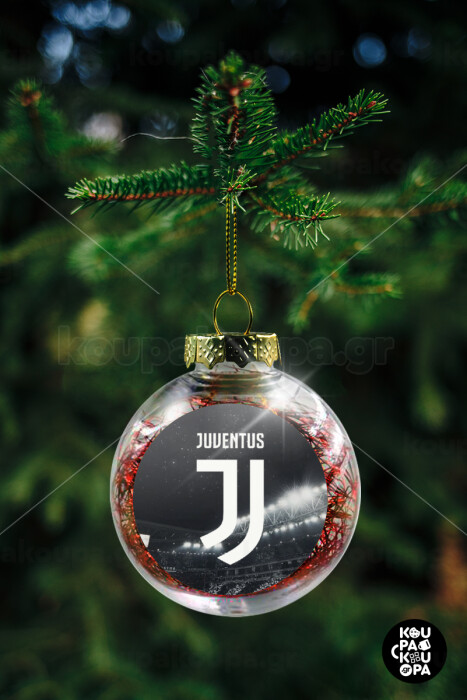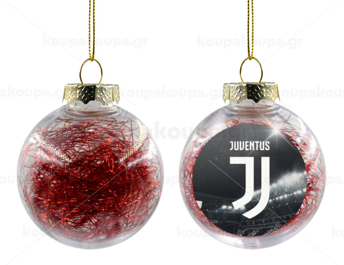FC Juventus, Transparent Christmas tree ball ornament with red filling 8cm