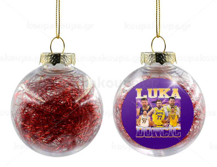 Luka Doncic Basketball , Transparent Christmas tree ball ornament with red filling 8cm
