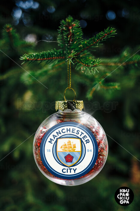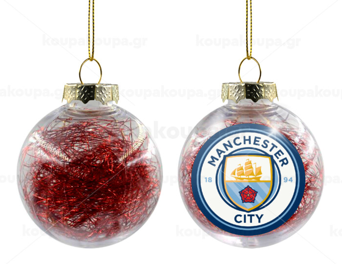 Manchester City FC , Transparent Christmas tree ball ornament with red filling 8cm