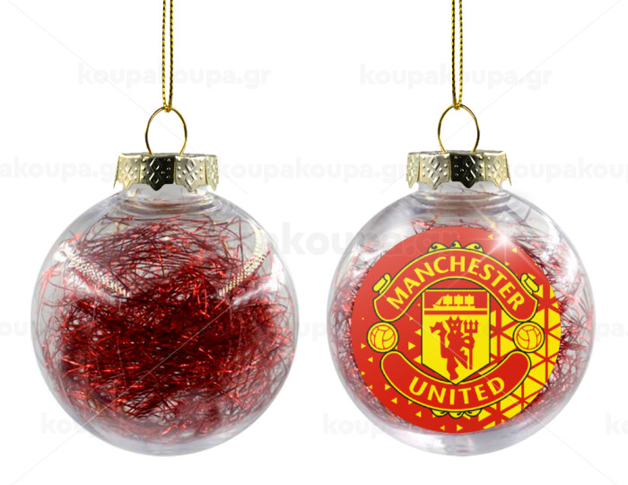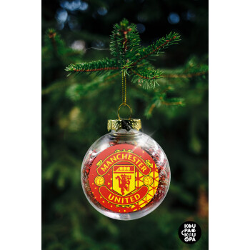 Manchester United F.C., Transparent Christmas tree ball ornament with red filling 8cm