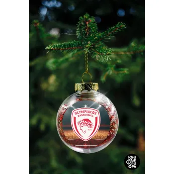 Olympiacos B.C., Transparent Christmas tree ball ornament with red filling 8cm