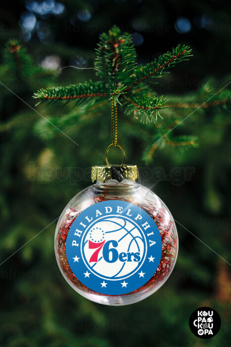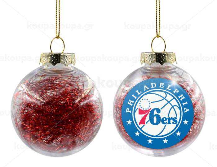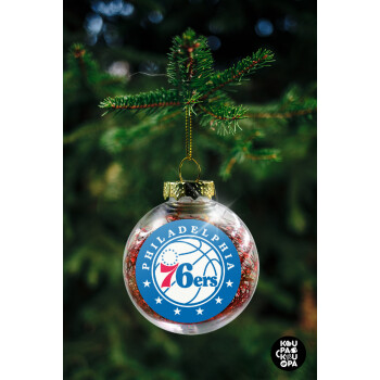 Philadelphia 76ers, Transparent Christmas tree ball ornament with red filling 8cm