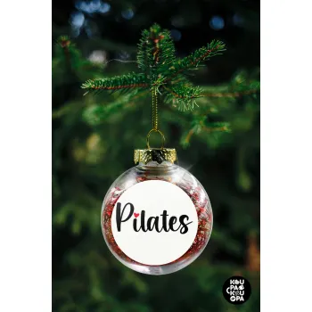 Pilates love, Transparent Christmas tree ball ornament with red filling 8cm