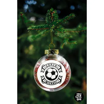 Soccer coach, Transparent Christmas tree ball ornament with red filling 8cm