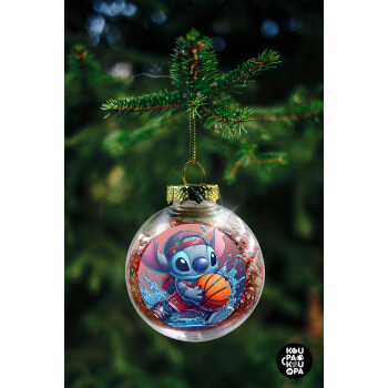 Stitch Basketball, Transparent Christmas tree ball ornament with red filling 8cm